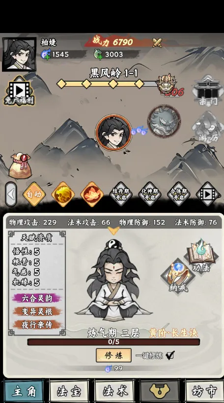 带着开挂系统去修仙是一款水墨画风的修仙游戏。它继承经典养成玩法,以练气为核心,涵盖法宝、法术、丹药炼制等多元内容。法宝系统有八个装备槽位,通过升级强化,未来可能推出词条洗练。法术系统五个槽位,随练气提升解锁,观看广告可额外解锁一个,前期需合理搭配。丹药炼制消耗战斗获取或坊市购买的药材,用于提升主角属性。游戏还设有炼丹炼器、师门任务等活动,模拟修仙生活,带来轻松愉快的体验。
