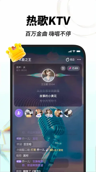 3. 多种互动玩法:支持一键录制高品质演唱作品,内置实时音效与伴奏调节功能,配合精准的歌声识别技术,让你唱得更准更出彩。还能参加音乐派对,与天南地北的好友合唱,用音乐遇见对的人。