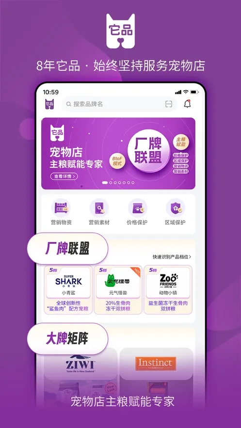 它品是由重庆禧元信息科技有限公司推出的宠物用品采购B2B平台。采用工厂-它品APP-商户直供模式,与全球超162个知名品牌合作。提供全方位客服,支持支付宝、微信支付。为宠物店打造专属微商城并代运营。自有仓库,确保商品快速安全送达。它品联盟提供防伪溯源功能,助力引流到店增加客源。不断优化,如v6.0.24版本提升体验、修复问题,v6.0.21及之前版本也持续优化它币兑换专区等。