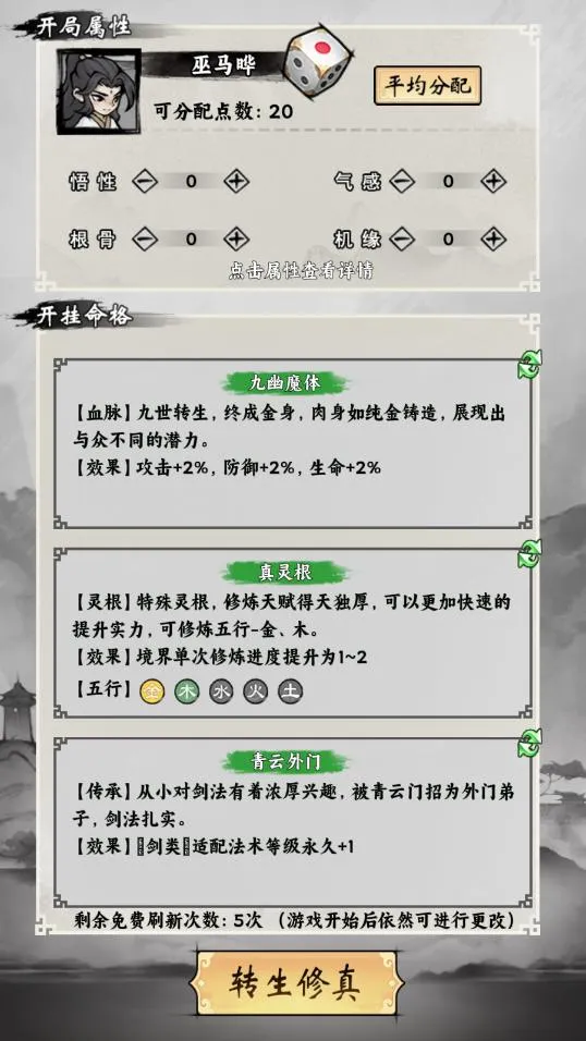 个性化的修仙体验:开局提供多种外挂选择,如天灵根、天生道体等,每种外挂带来独特体验,可加速修炼或降低法宝使用门槛,塑造属于自己的个性化修真之路。