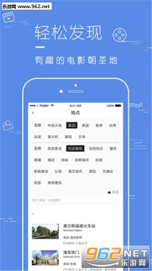 3. 多样专题分类:通过电影和地点类型筛选,轻松发现感兴趣内容。定期推出专题,批量推荐同一主题下的电影和地点。还能按城市维度分类取景地,并有精彩场记文章讲述银幕上的地方。