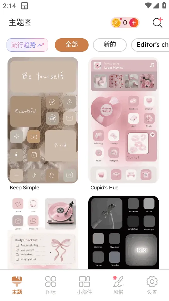 3. 进入主题筛选页面选择喜爱样式。