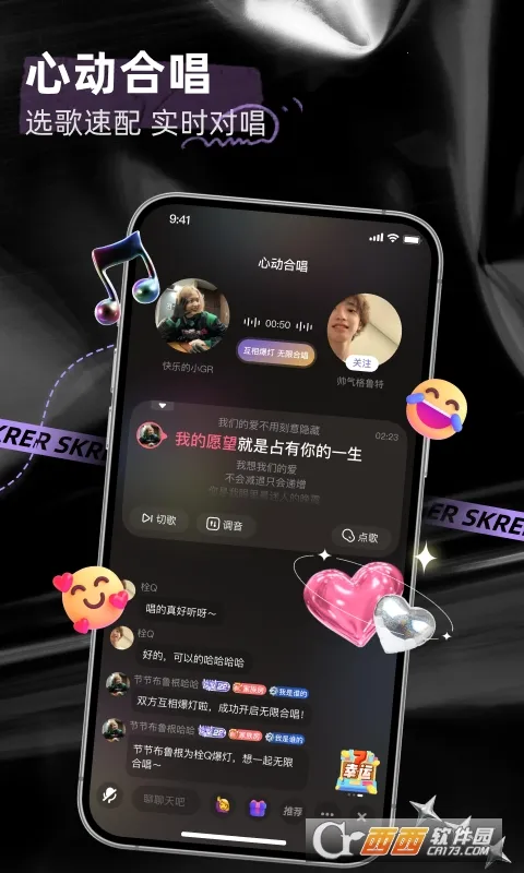 想体验独特的唱歌竞技社交吗?那就来试试撕歌吧!这里有超多好玩的唱歌玩法,比如一唱到底,7人匹配抢唱,20秒清唱接唱,还能一键爆灯灭灯决定谁能留在台上。还有K歌排位比赛和段位机制,3人一组共同PK,唱得好就能晋级更高段位,段位高还有红包好礼拿。心动合唱能根据声音特质匹配优质声音一起K歌聊天;热歌抢唱拼手速抢歌,唱得好能收礼物打赏;全民领唱可与不同人实时合唱找音乐cp;主题房多人排麦唱聊,各种好玩主题任你选。软件界面美观大方,操作方便,能让你通过歌声与他人交流交友,和同城附近的人连麦K歌。在这里,你可以尽情享受音乐与竞技结合的乐趣,用歌声展现自己,结交志同道合的朋友。快来开启你的撕歌之旅吧!