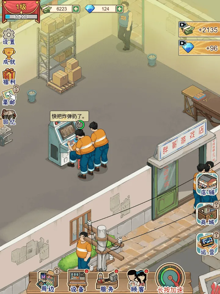 2. 丰富经营玩法:从日常的清点货物、擦拭街机,到根据客流调整运营节奏,解锁更多时代元素,不断壮大铺子版图。