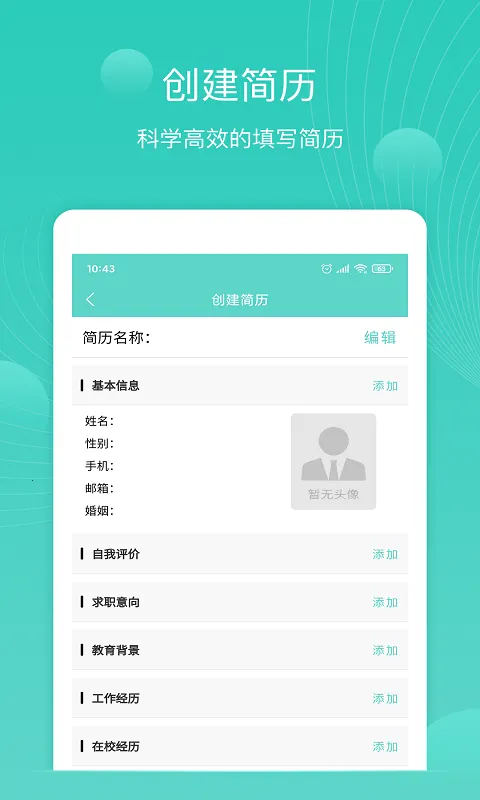3. 贴心呵护:支持多职位简历创建,方便学生求职,可拥有多份简历。