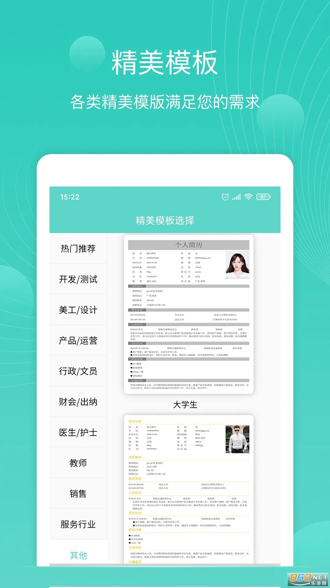 4. 高效便捷:多款精美优质模板,一键生成专属于你的简历模板。