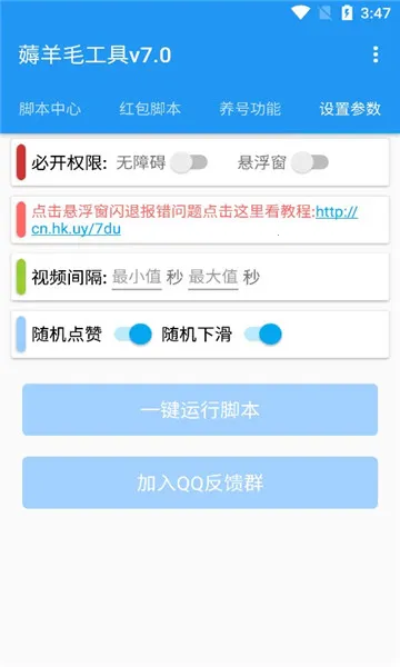 使用起来也不难,进入脚本中心选应用设滑动次数,进入参数设置开启权限并配置播放时长等,启动脚本后按提示操作就行。有了全能快刷,就能轻松利用碎片化时间,高效获取奖励,让刷视频等操作变得简单轻松,满足从养号到薅羊毛的全链路需求。