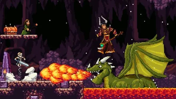 苹果骑士是像素风格横版动作冒险游戏,玩家扮演骑士开启冒险。有多样挑战关卡,地形各异,要躲避陷阱和攻击,用武器对抗敌人,还能解锁更强武器,快来体验能闯到第几关吧。