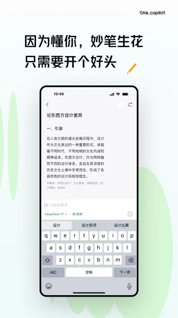 强大的内容生成:囊括AI问答、多模态文本创作与图像生成等服务。输入描述就能生成PPT、美术设计、插图、草图等,文本生成备份涵盖软文写作、邮件草稿、营销内容及代码生成等。