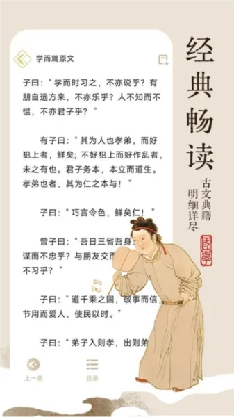 支持视频讲解、音频播放并配合插画,帮助用户更直观理解国学内容,安全高效自学。