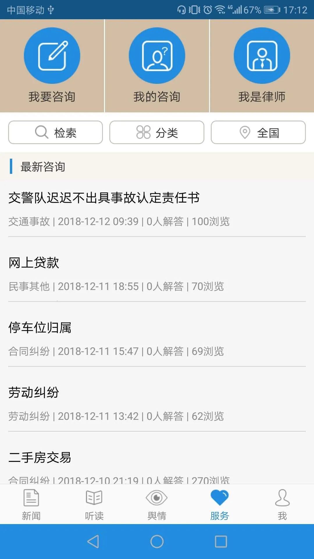 拥有独特的听读频道,可听读期刊文章等有趣书籍,让法律教育更贴近生活。同时,能根据用户位置提供问题和地区分类,快速匹配适合的专业律师。
