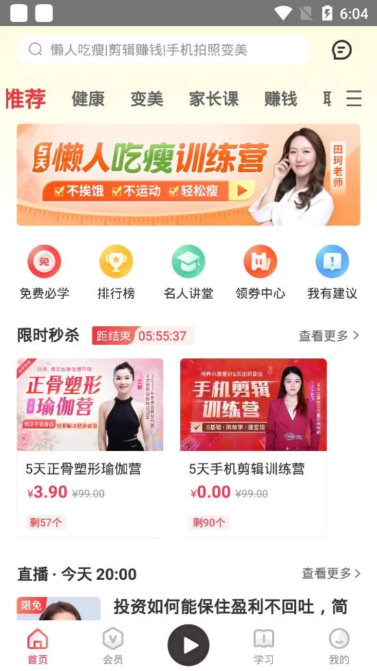 2. 海量知识宝库:课程覆盖22个类目,汇聚20万课程,每个类目下有10000精华内容,1000各种主题优质直播间,想学的都能找到。