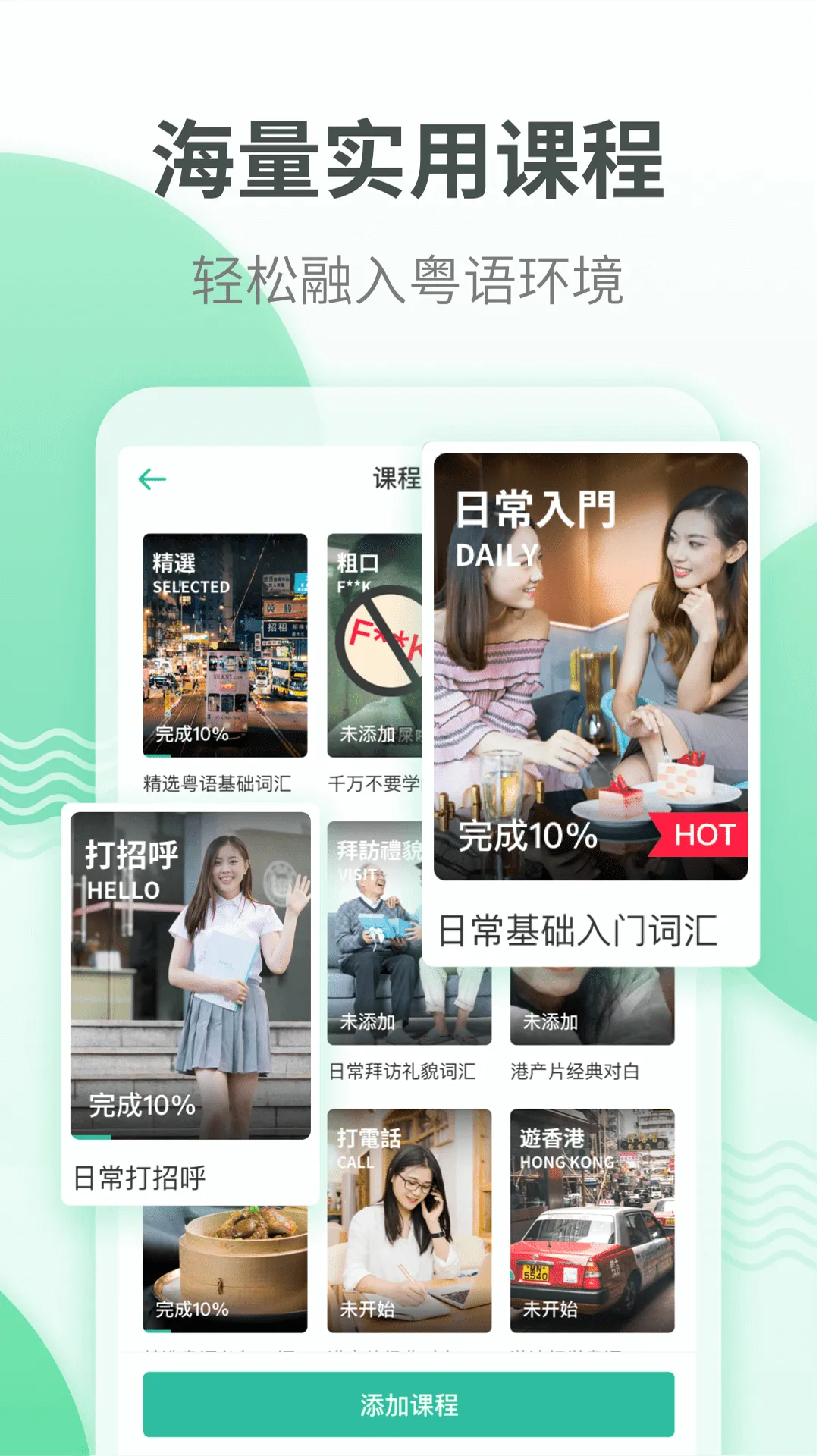 3. 阶梯式学习内容:学习内容从基础词汇到日常对话,再到粤语歌曲和港剧台词,逐步进阶,便于学习者循序渐进掌握粤语。