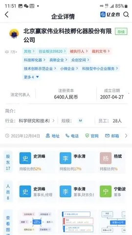 亿企查是一款超实用的企业信息查询软件。它能帮你轻松了解企业详情,比如企业的法人股东、实缴资金比例等。不管你是金融从业者、律师、投资人,还是普通大众,只要有查询企业信息的需求,它都能满足。