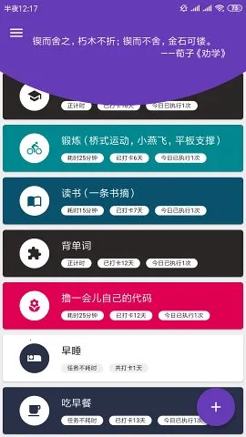 2. 支持建立各种类型项目,如早起跑步、学习等,还能随意挑选背景,按时完成打卡。