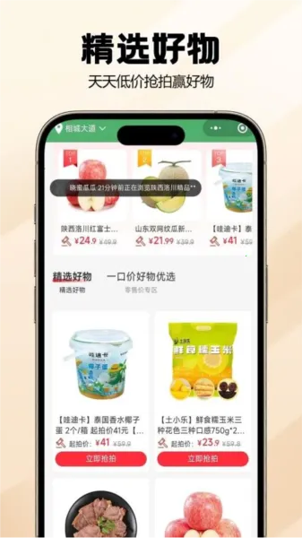 低价抢拍机会:不定期推出活动,用户有机会以远低于市场价的价格买到心仪农产品,享受超值购物优惠,带来惊喜体验。