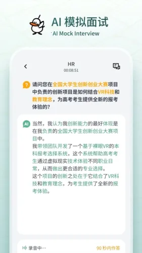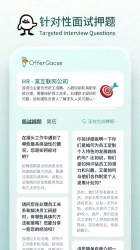 1. 智能问题生成:通过上传简历和目标职位描述,多面鹅AI为你量身定制独特面试问答,让你在求职竞争中更具优势。