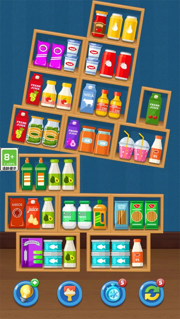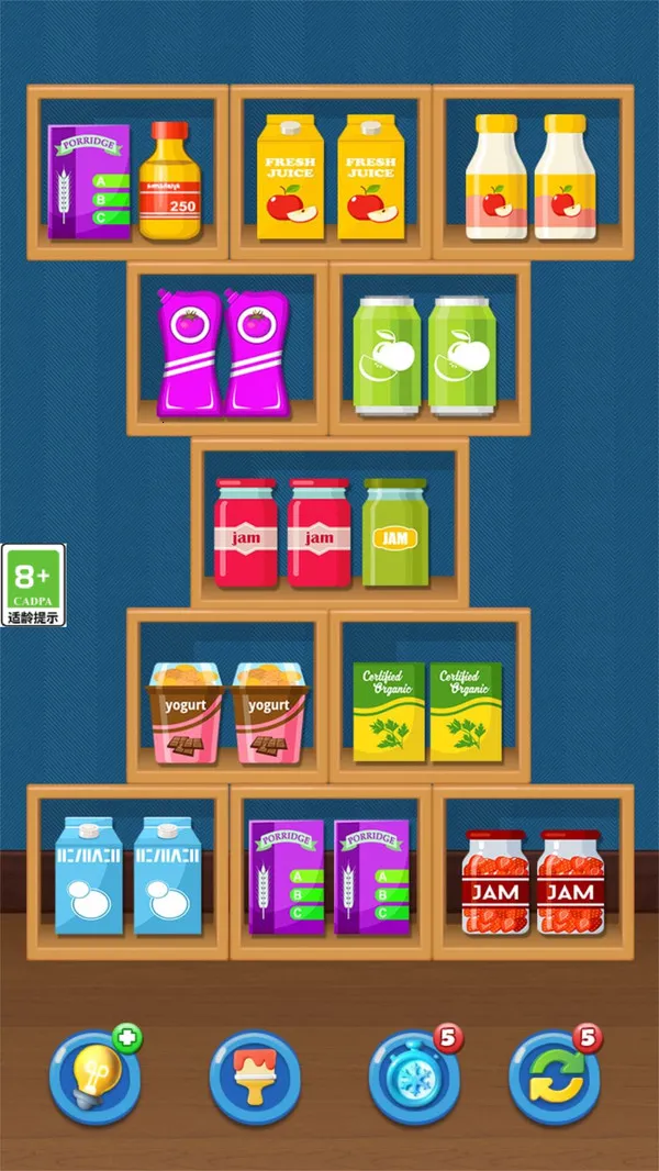 清理货柜是一款轻松易上头的消除类休闲手游。通过移动货架商品,将三个相同物品放一格消除闯关。玩法简单却考验观察力与规划力,关卡循序渐进,解压烧脑,适合碎片时间放松,易连玩多关。