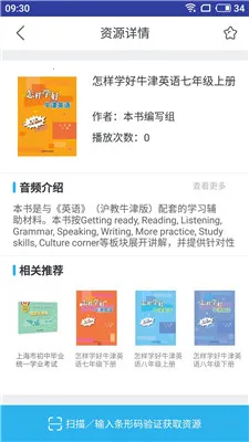 3. 资源配套完善,为上海教育出版社出版的教学辅导材料提供配套录音文档以及微视频等数字资源,具备音视频在线播放、音频离线下载、PDF文档预览等功能,方便学生在家自主预习和学习课本知识,还可通过条码识别快速激活图书配套数字资源。