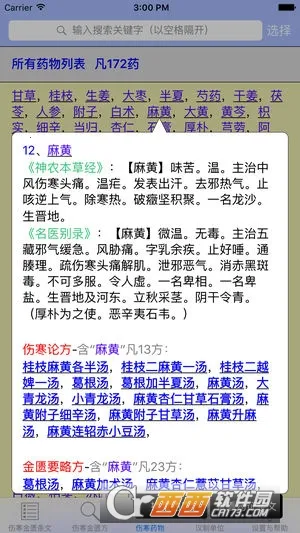该应用整合伤寒论知识、金匮方、金匮药及汉制单位介绍。以表格展示398条原文及113方等内容,方便过滤搜索条文或按编号定位。搜索框支持多关键字、通配符搜索,结果关键字染红。使用赵开美翻刻宋版条文,据康平本染色助鉴别。还支持正则表达式查询染色、小窗口显示方药等功能。收集172味药物本经及别录内容,由苏方达先生校对。操作上,输入数字可定位条文,关键词加空格或“-”有不同搜索效果,输入“f”或“y”弹出辅助框。