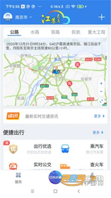 江苏交通云平台由江苏省交通通信信息中心官方打造。它是综合交通管理服务 app,为江苏用户提供道路交通资讯。能避开拥堵路段,轻松安全出行乘车。覆盖内部管理、行业管理、政务及公共服务等领域,实现行业移动应用统一规划、集中运行、整体维护。功能丰富,如公交、地铁等交通查询,违章查询,车辆服务等。采用卡片式布局,操作方便。会持续用 GPS 定位服务,切换后台也运行,较耗电影响电池续航。