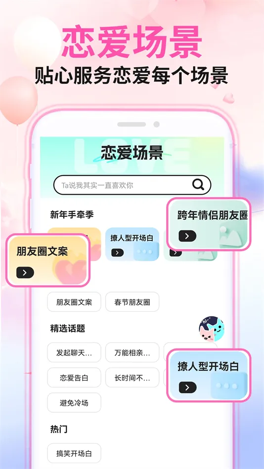 拥有海量恋爱聊天话术技巧,多种场景针对性回复教程,堪称移动万能回复话术库。告别生硬日常聊天,情话频出升温关系,摆脱尬聊。适用恋爱新手、追求期男女、长久恋爱情侣及所有渴望提升情感表达能力的人,助你在情场游刃有余,精准传递心意,轻松脱单恋爱。
