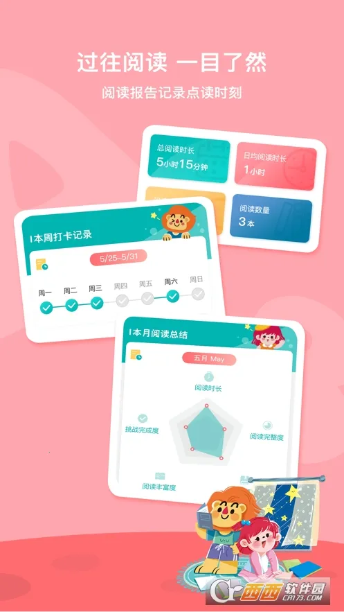 2. 个性化阅读记录:每周每月记录并分析孩子阅读数据,助于家长了解孩子阅读情况。