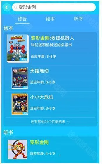 搜索出来结果后即可挑选与之相关的绘本或者听书故事