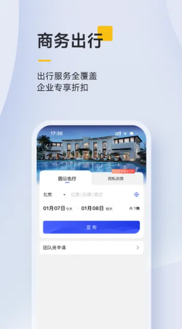 整合全场景出行资源,提供一站式全流程管控,从预订到审批再到报销,轻松搞定。