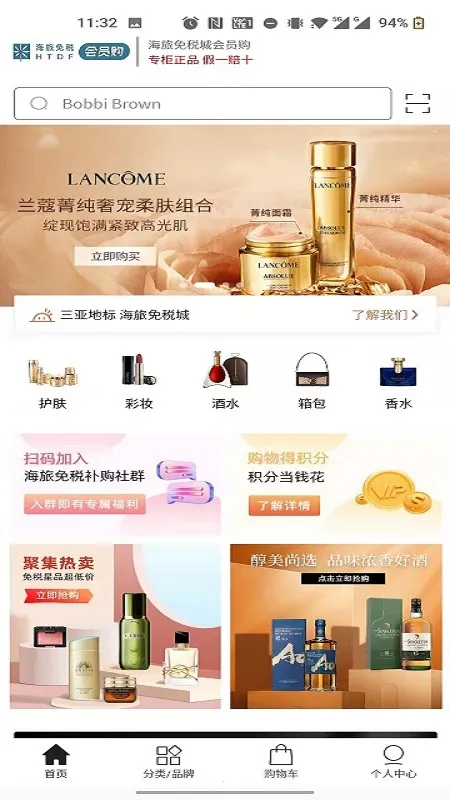 海旅免税会员购隶属于海南旅投免税品有限公司,是三亚海旅免税城官方商城。这里有海量正品,涵盖45大类免税商品、近350个国际知名品牌。手机轻松下单,支持多种提货方式或邮寄到家。离岛免税政策经国务院批准,全程海关监管,有免税品特许经营权。众多知名品牌云集,原产地海外直采。每日更新高品质商品,可一键订购,还能领优惠券享折扣。查看购物袋、订单信息方便,编辑地址也便捷,为你带来优质购物体验。