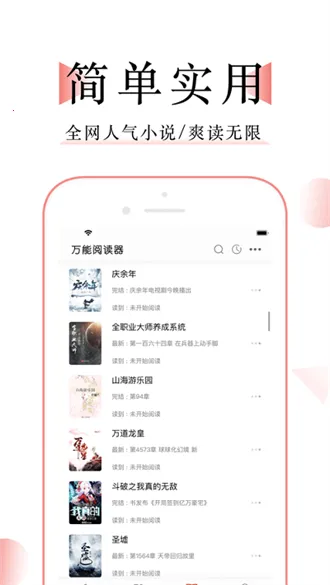 万能小说阅读器2026官方最新版本,能轻松获取全网免费小说,及时更新榜单。提供丰富类型,支持离线阅读、听书。有书签记录,可社区互动。集成各类资源,满足多样需求,随时随地畅享阅读。