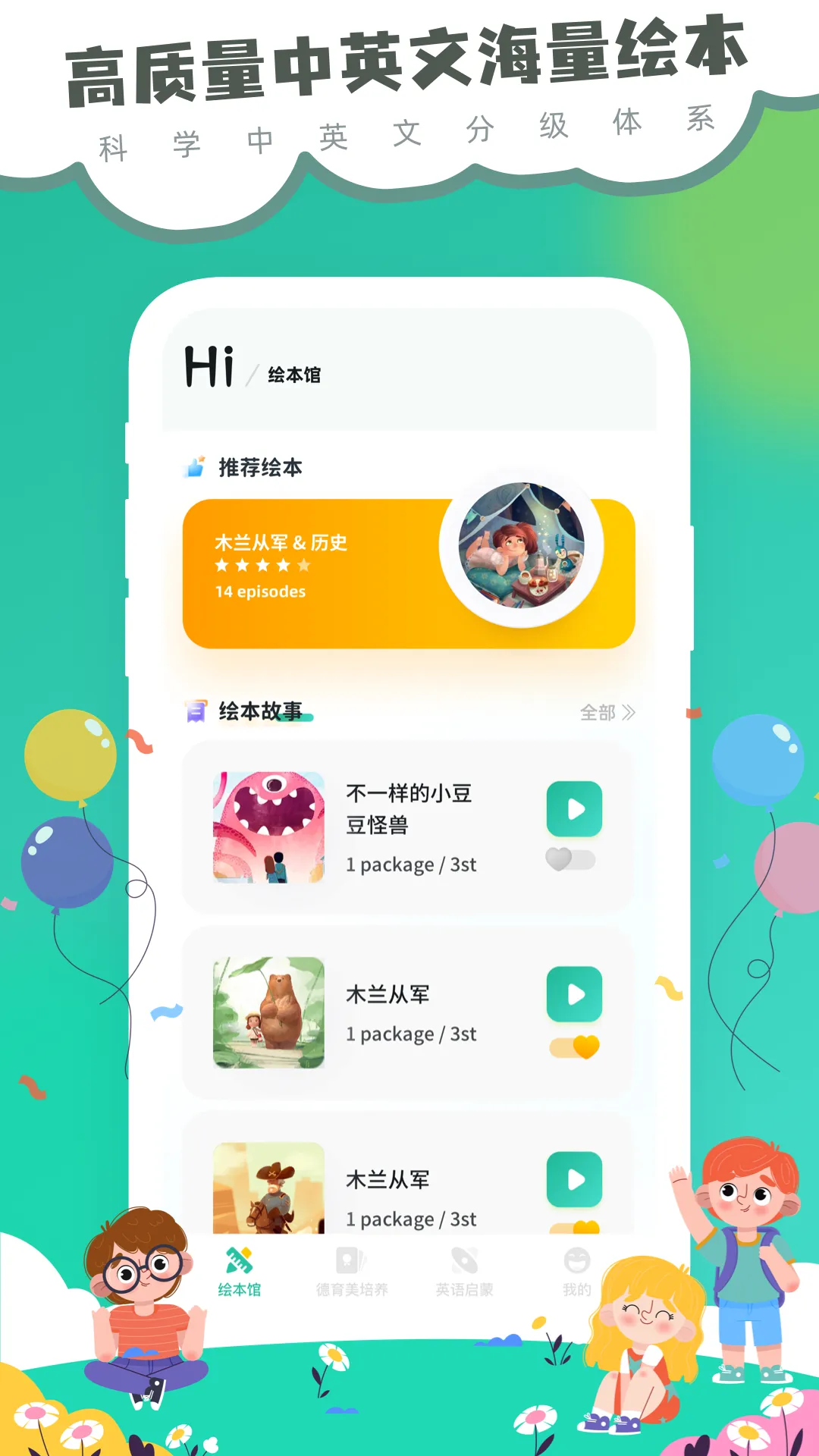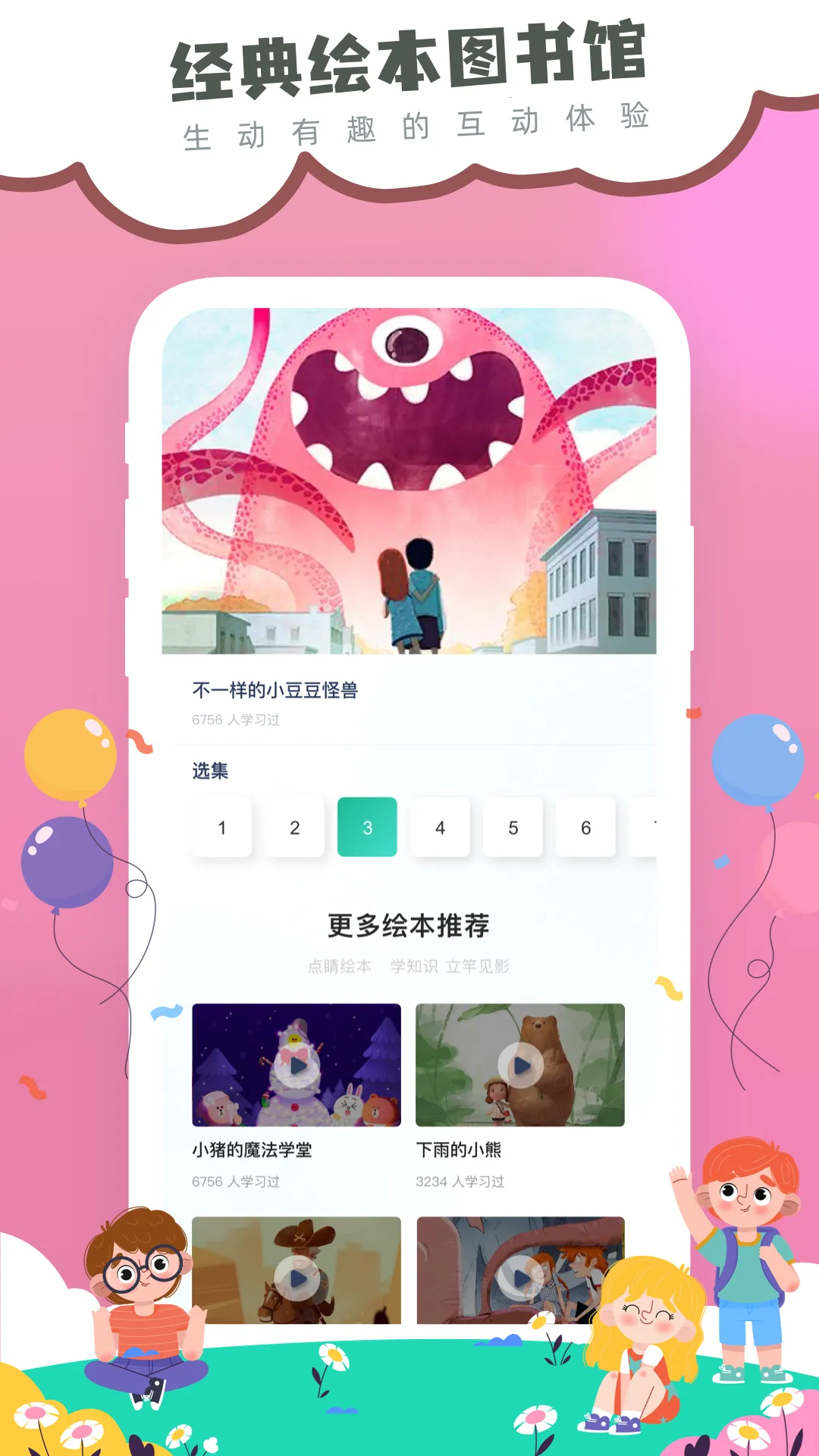 4. 涵盖宝宝常用英语单词,还会定期更新,添加更多新内容。每个单词都配有真实图片和标准的真人美式发音。不仅有学习功能,还配备儿歌和认字母小游戏,帮助检测宝宝学习效果。APP体积小巧,随时随地都能轻松打开使用。资源丰富,包含儿歌、故事、字母识字等内容。
