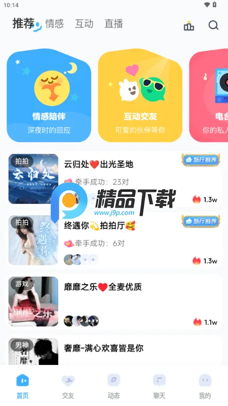 1、专为年轻人打造的线上陪伴互动社区,营造温暖有趣社交环境。