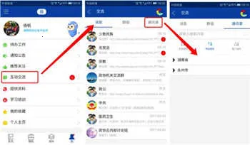 (2)选择“互动交流”,查看未读消息提示(红点标识),点击进入聊天列表;