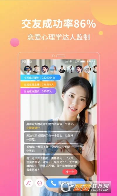 这是一款由合肥要特科技有限公司开发的视频交友手机软件。在这里,有诸多优质年轻用户,能轻松扩大社交圈找伴侣。平台会智能匹配对象,还设置有趣聊天话题。可通过多种聊天方式快速拉近彼此距离。能快速找到身边异性及同兴趣小伙伴,关注喜欢的人查看动态。专为单身用户设计,真人认证易找共同话题朋友。有声音交友、视频交友等模式,一键完善资料等亮点,还有真人在线、海量创意小视频等优势,快来下载体验!