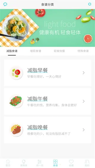 分类精细:食谱板块按减脂增肌等目标细分,还有减脂早午晚餐等具体餐单,能满足不同需求,助你轻松找到适合自己的饮食方案。