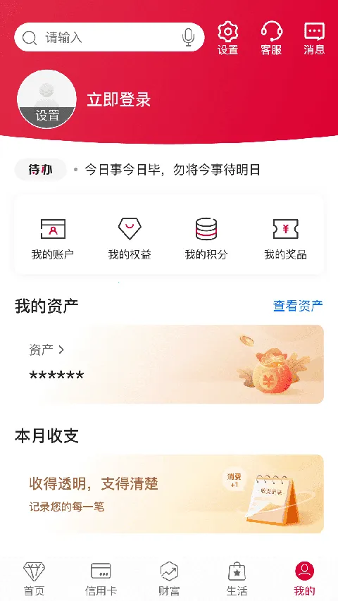 主打便民富民惠民乐民,有财富购物车、家庭财富全景视图等六大王牌财富管理服务,还为六大客群提供专属服务。理财之余,内置升级生活服务平台,有福仔云游记等趣味互动活动。支持查个人征信,方法简单。此外,还有全球账户管理、账务全面掌握、多重安全保障等亮点,不断更新升级,如新增信用报告等功能,优化多项查询及信用卡功能。