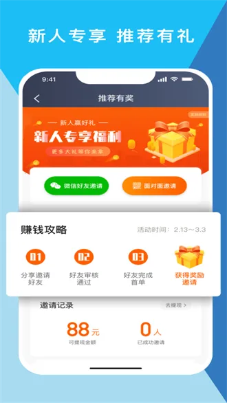 2. 丰厚收入:有高峰免佣、限时免佣、高峰奖励、抢单奖励、推荐奖励、保底收益等多样活动,助力提升收入,且平台垫资,收益秒到账,每日可提现。