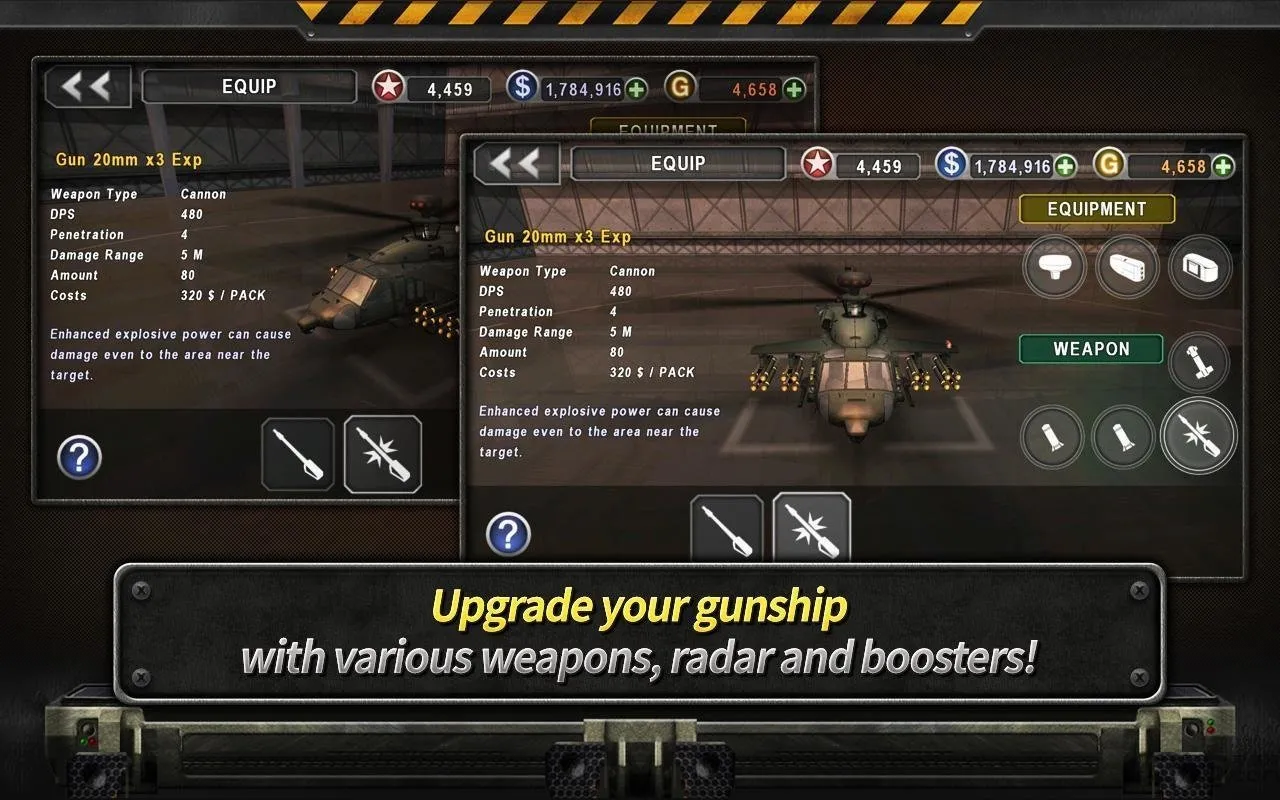 丰富直升机选择:世界上一些最强大的战斗多用途直升机登场,每架都有独特有趣特性,可安装各种武器和设备。