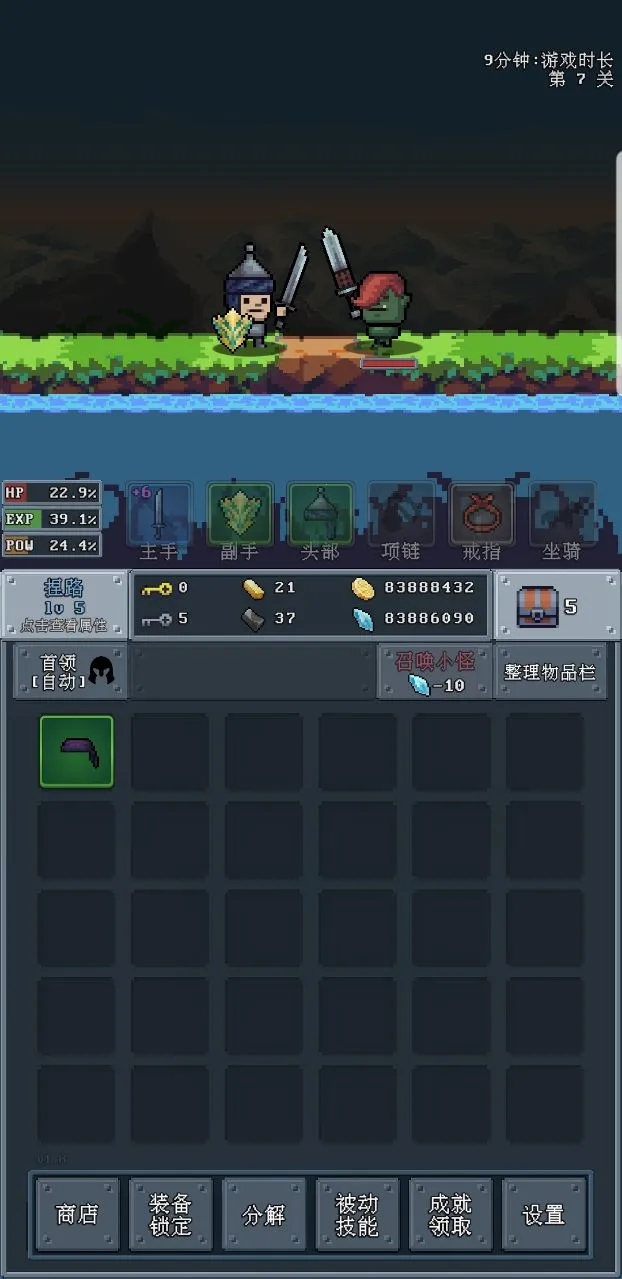 河堤战士2025官方正版是一款像素风格冒险战斗游戏,玩家扮演战士冒险闯关,击杀怪物获装备道具武装角色。游戏有丰富武器技能,自动战斗,还有成就系统,此次v3.6版本修复了bug 。