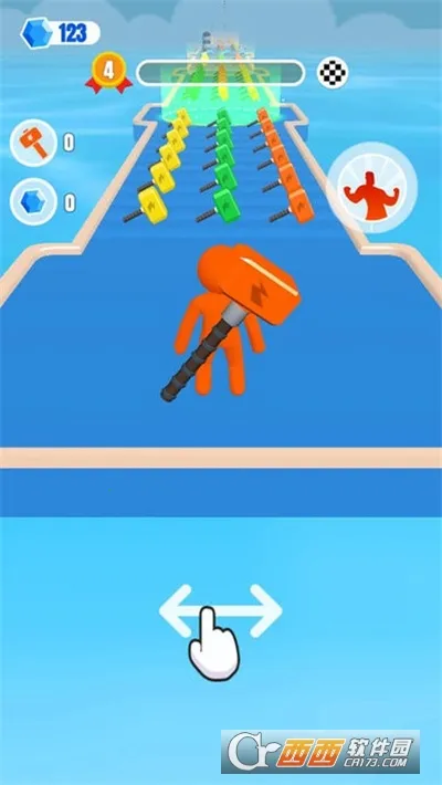 3、玩家要操控手持巨锤的角色,收集同色锤子,收集越多分数越高,还能体验成就感与满足感。