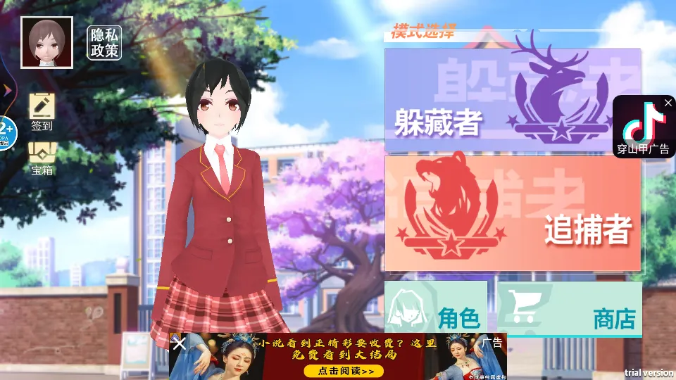 樱花高校躲猫猫是深圳市时间坊贸易有限公司开发的休闲竞技对抗游戏,有躲藏者与抓捕者双模式,4V1逃脱者模式,玩家能体验实时竞技对抗,还有丰富道具、多变策略,超大场景与紧张音效带来全新心跳体验