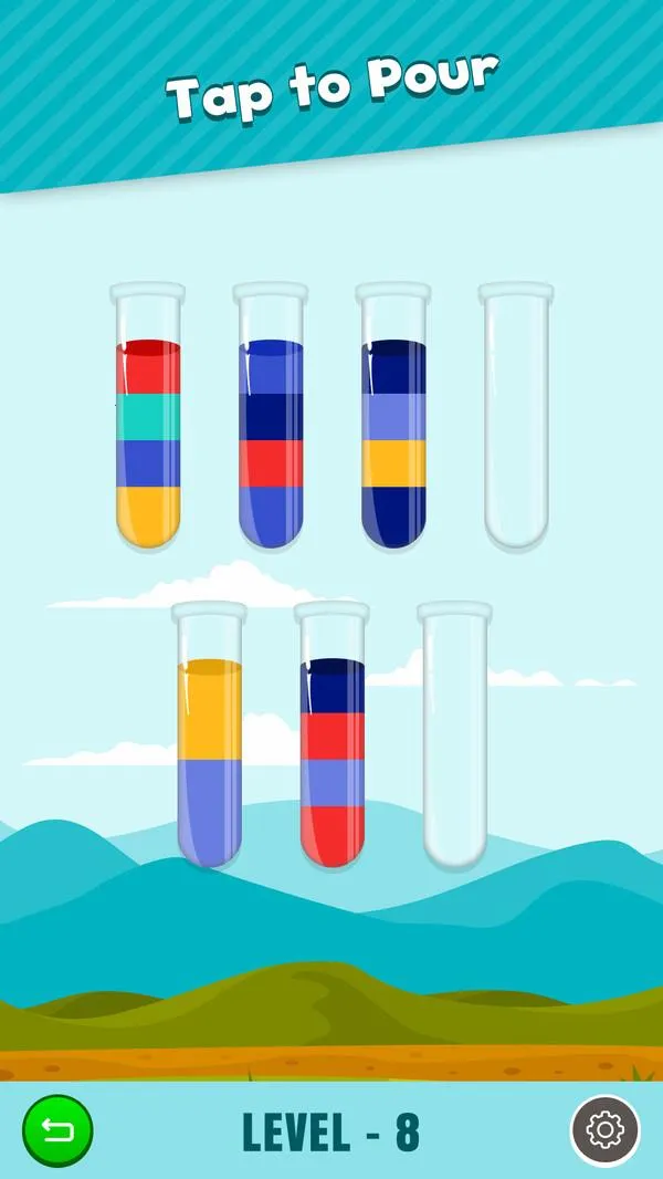 采用简单操作玩法模式,控制水瓶倒入不同液体,变换出各种颜色,操作方式趣味十足,带来极强的娱乐体验。