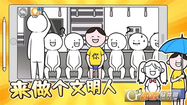 来做个文明人是一款情商模拟游戏,魔性烧脑玩梗。有丰富关卡,能全身心投入剧情享受闯关氛围。可化身情商大师处理人情世故,解决社交尴尬,解锁成就,还有精彩冒险玩法与多样关卡任务。